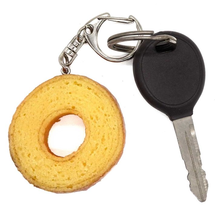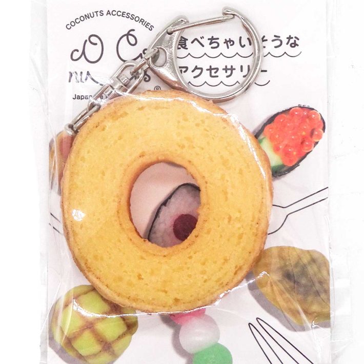 食べちゃいそうな バームクーヘン食品サンプルキーホルダー ストラップはいかがでしょうか?直径5cmのミニサイズで、本物から型取りしたリアルな質感が魅力です。職人が一つずつ手作りした日本製のこのアイテムは、まるで本物のバームクーヘンそのもの!表面のディテールにもこだわっており、見るたびに思わずきゅんとすること間違いありません。